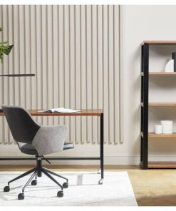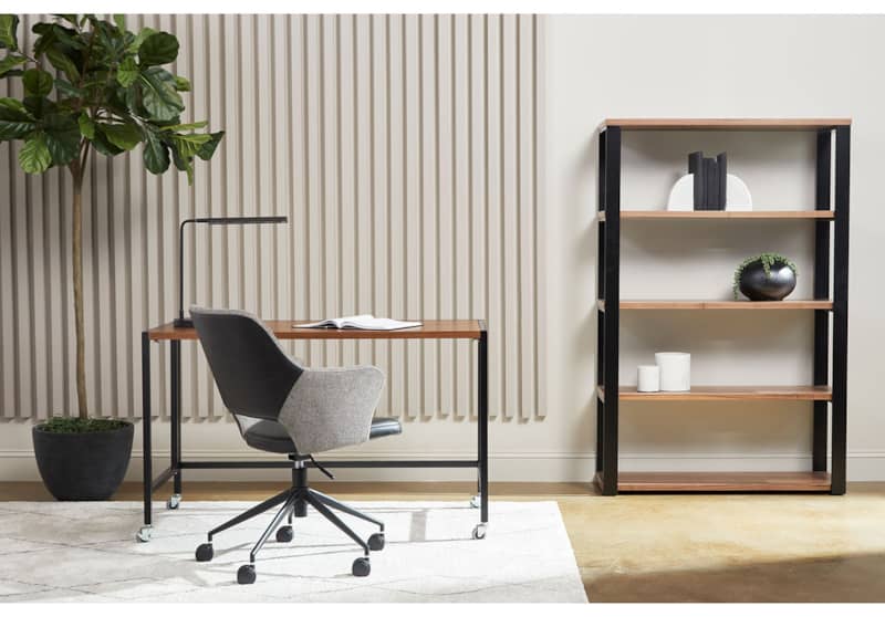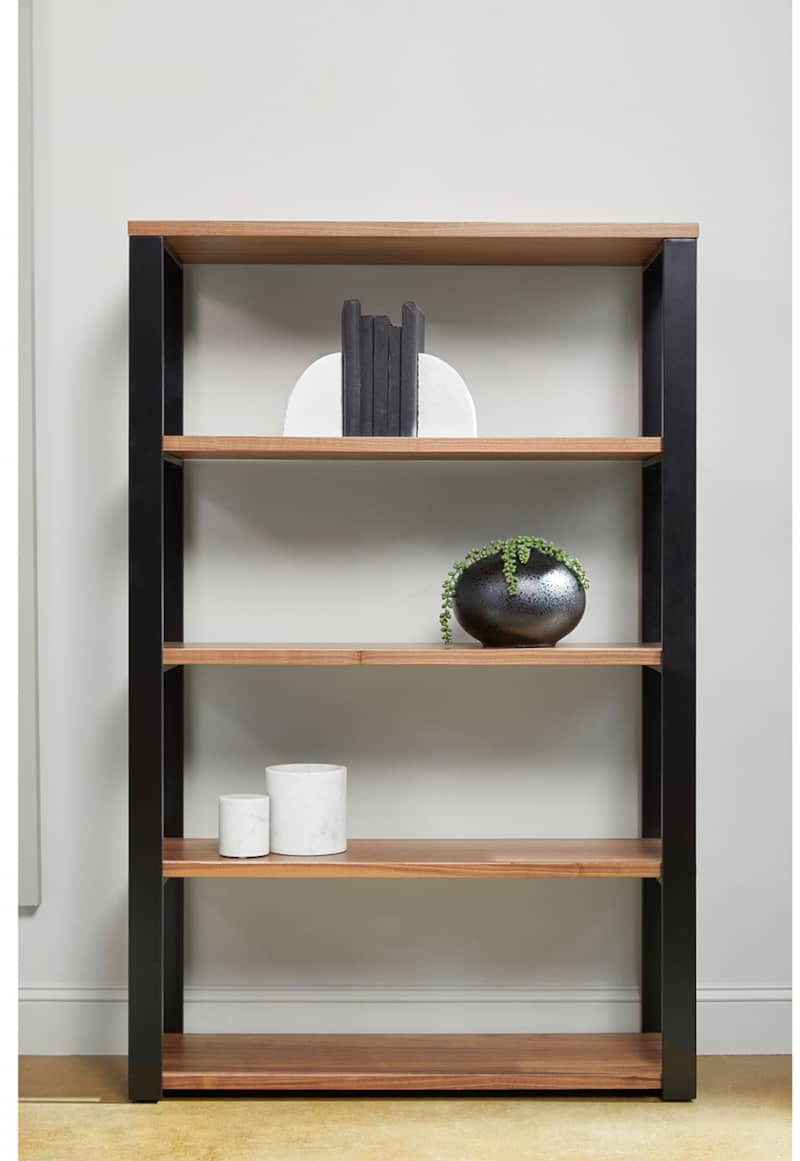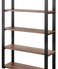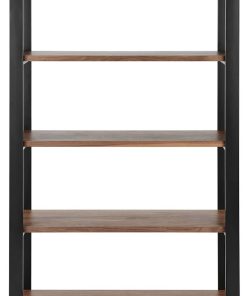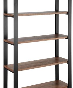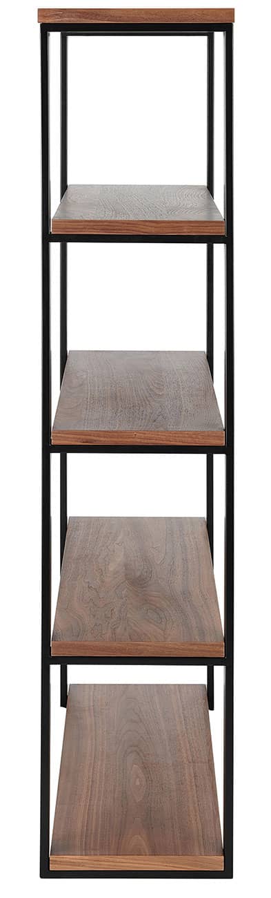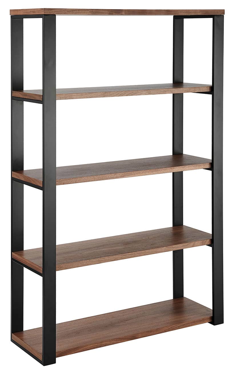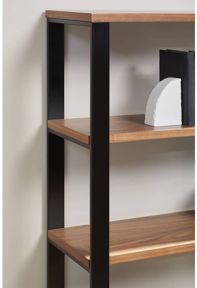 Euro Style 90471WAL-KIT Dillon 40″ Shelving Unit In American Walnut Veneer w/ Matte Black FrameThe Dillon Collection fulfills all your workspace needs. The desk and side return feature strong powder coated, polished or brushed stainless steel frames supporting broad working surfaces in your choice of lacquer or American walnut veneer. The shelving unit has an equally strong steel frame and five sturdy shelves in a beautiful American walnut veneer or lacquer finish. Features