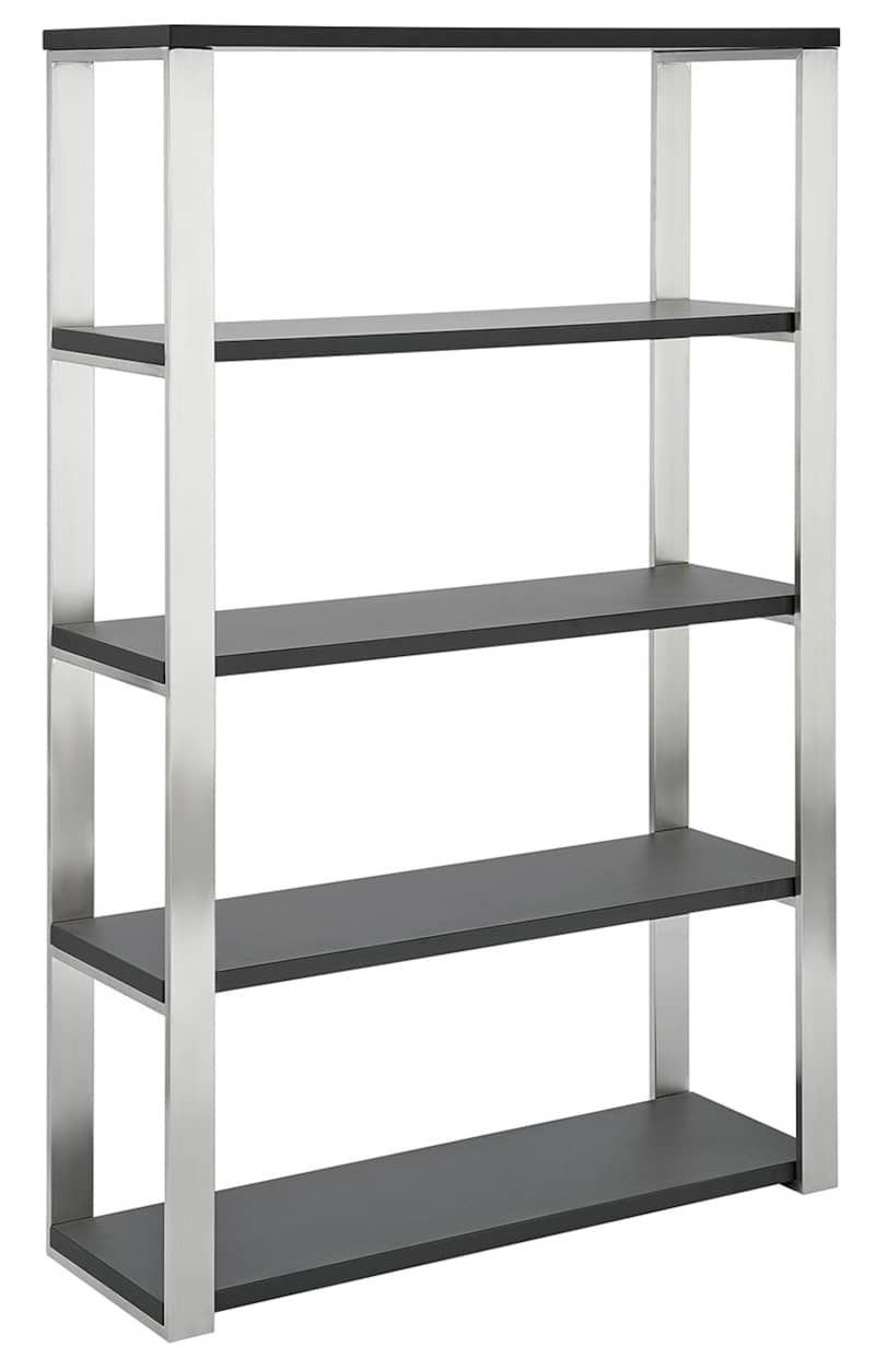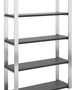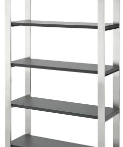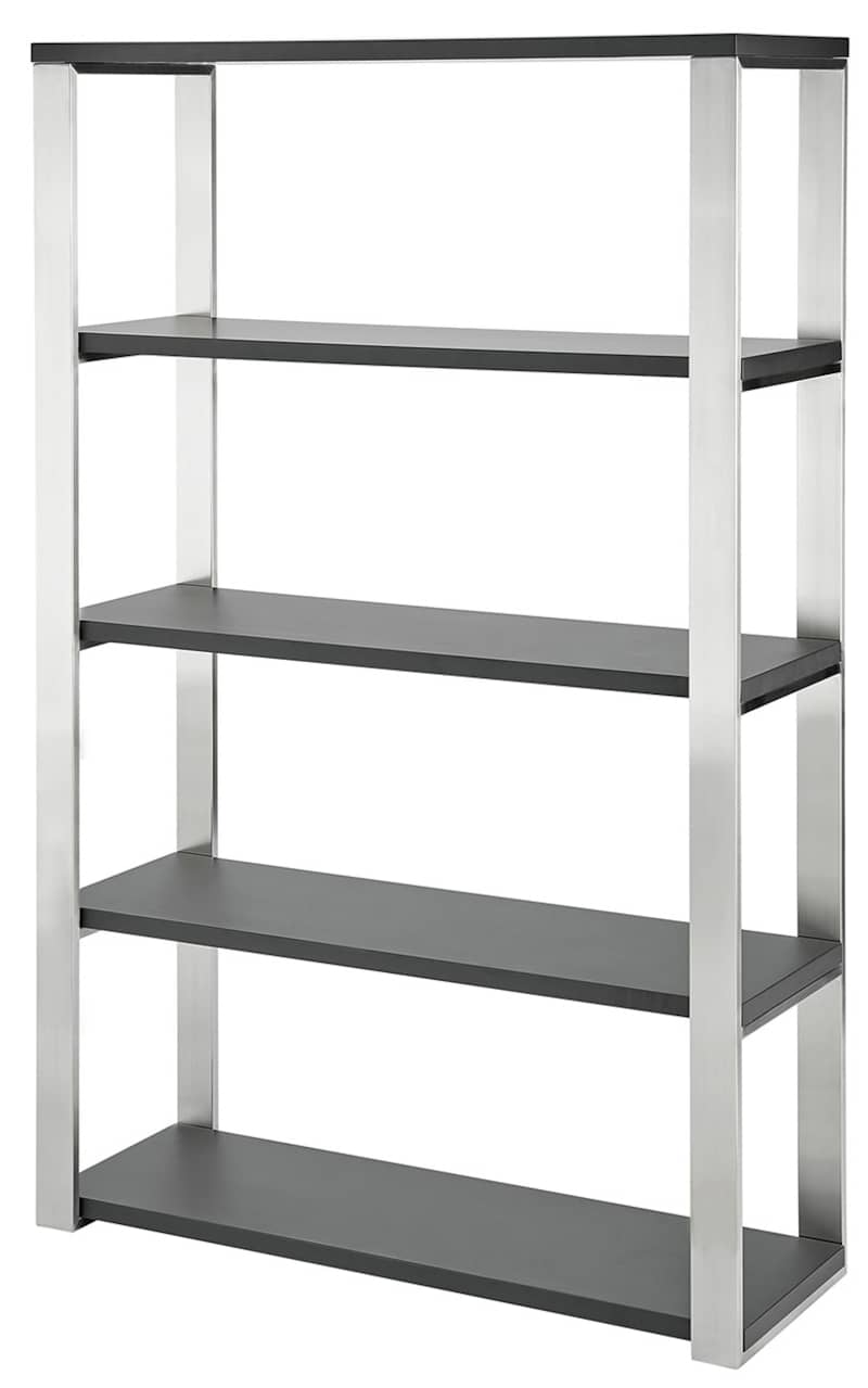 Euro Style 09847ANT-KIT Dillon 40″ Shelving Unit In Matte Anthracite w/ Brushed Stainless Steel FrameThe Dillon Collection fulfills all your workspace needs. The desk and side return feature strong powder coated, polished or brushed stainless steel frames supporting broad working surfaces in your choice of lacquer or American walnut veneer. The shelving unit has an equally strong steel frame and five sturdy shelves in a beautiful American walnut veneer or lacquer finish. Features