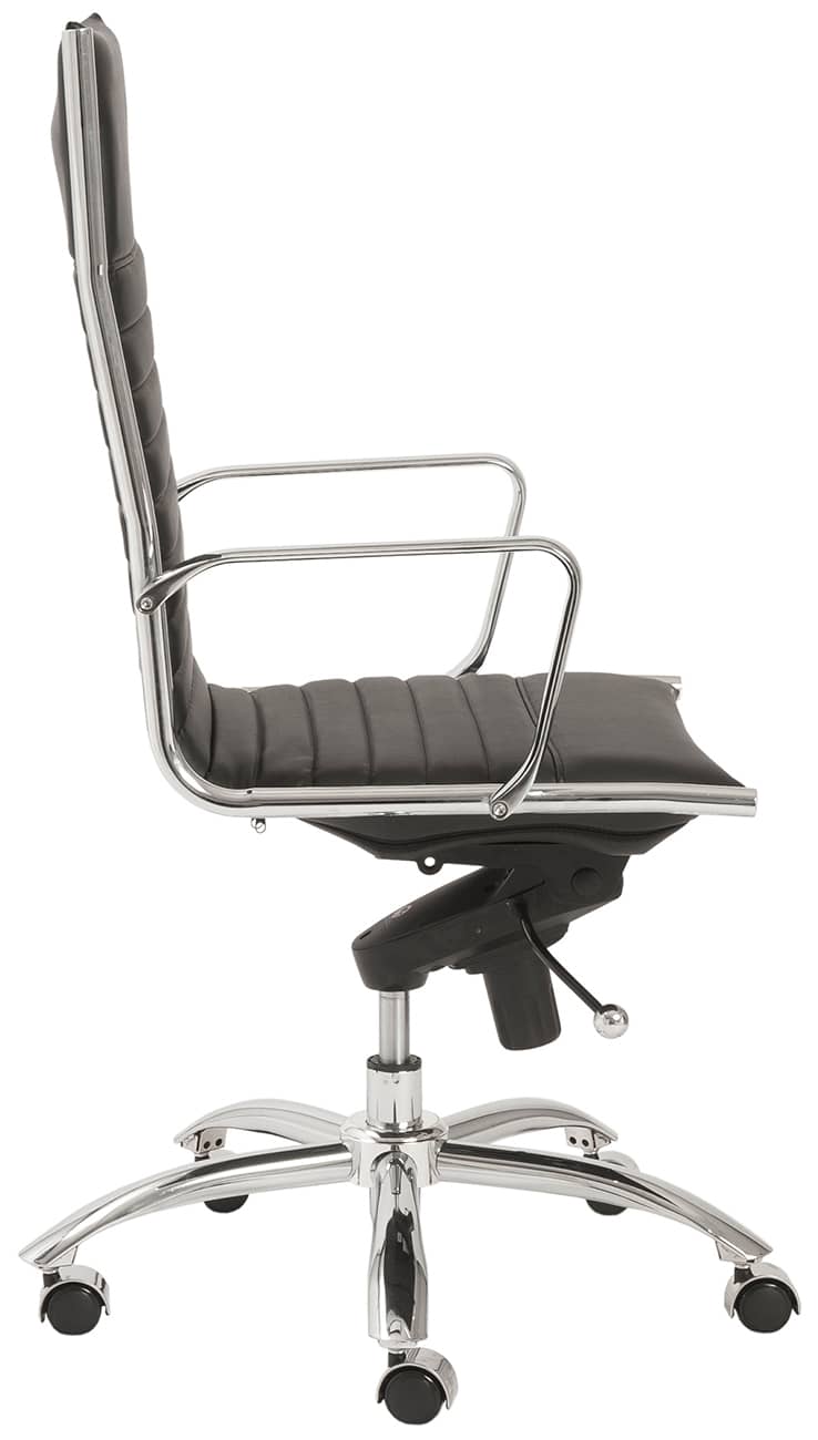 Euro Style 30481DKGRY Dirk High Back Office Chair in Black w/ Chromed Steel BaseHigh back or low, armrests or not, the Dirk Office Chair design is very popular for all the right reasons. The seat and back are constructed into a single piece for a finished look, while inside the seat and back are flat bungie bands which offer an outstanding level of comfort that is famous worldwide. With stunning design and a variety of color options, the Dirk is perfect for any office space. Features