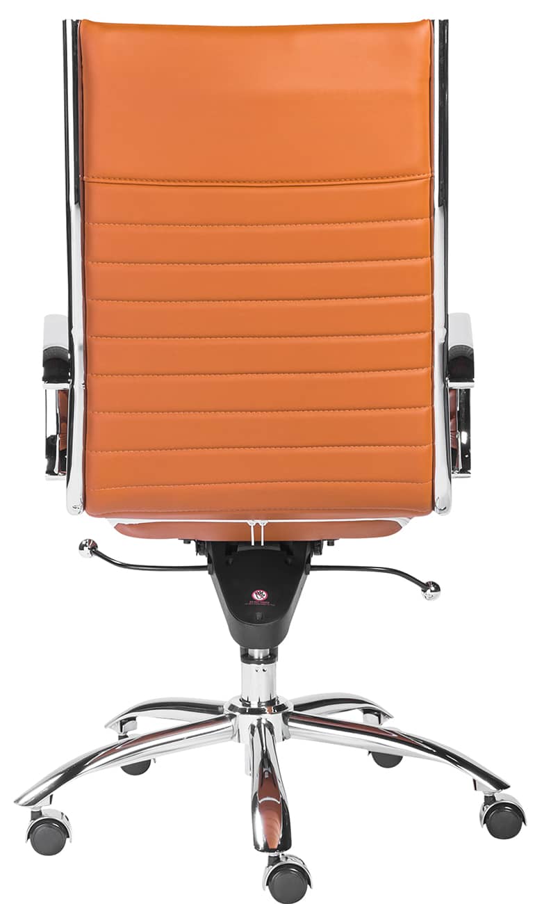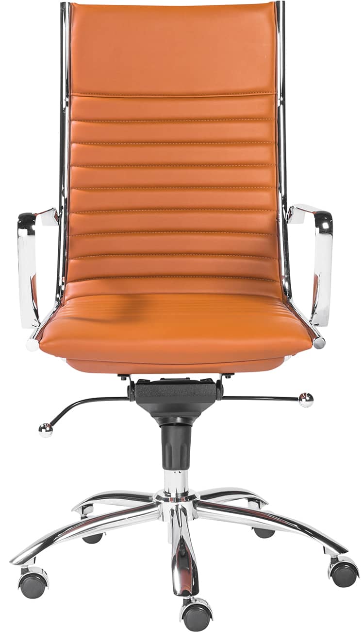 Euro Style 00675COG Dirk High Back Office Chair in Cognac w/ Chromed Steel BaseHigh back or low, armrests or not, the Dirk Office Chair design is very popular for all the right reasons. The seat and back are constructed into a single piece for a finished look, while inside the seat and back are flat bungie bands which offer an outstanding level of comfort that is famous worldwide. With stunning design and a variety of color options, the Dirk is perfect for any office space. Features