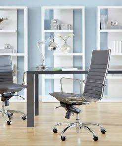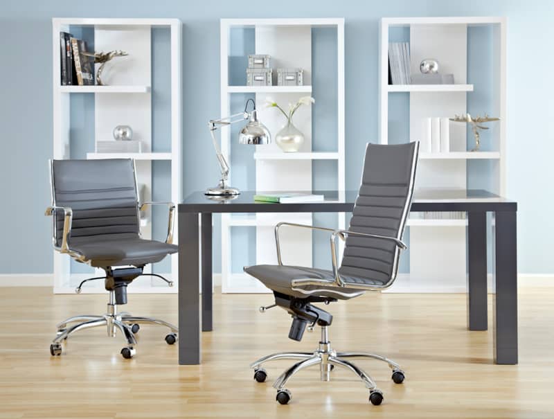 Euro Style 00675GRY Dirk High Back Office Chair in Gray w/ Chromed Steel BaseHigh back or low, armrests or not, the Dirk Office Chair design is very popular for all the right reasons. The seat and back are constructed into a single piece for a finished look, while inside the seat and back are flat bungie bands which offer an outstanding level of comfort that is famous worldwide. With stunning design and a variety of color options, the Dirk is perfect for any office space. Features