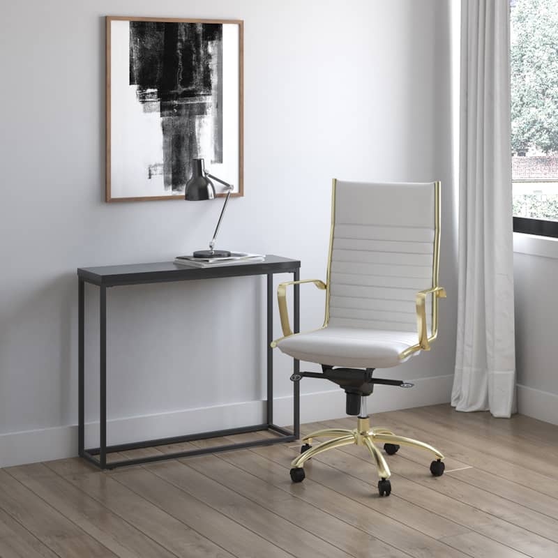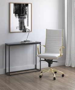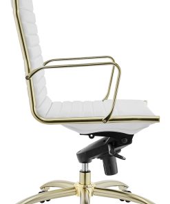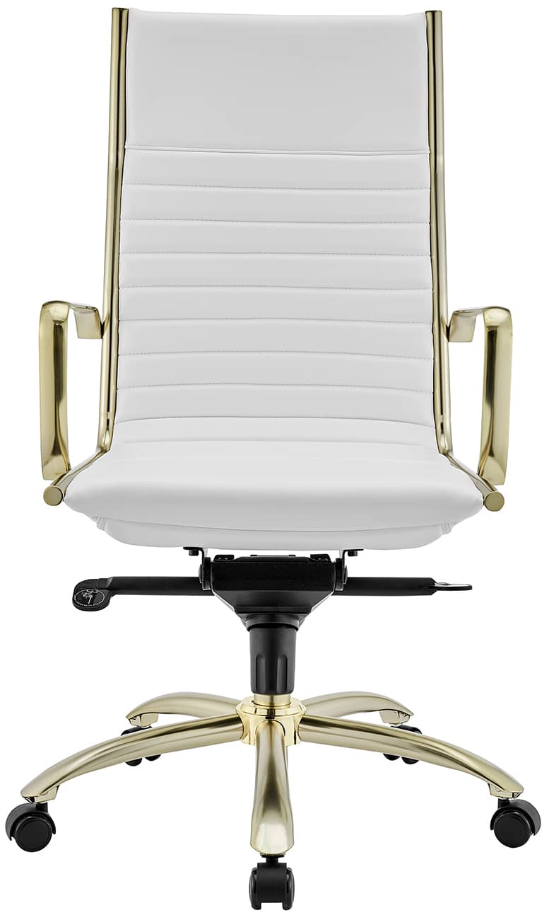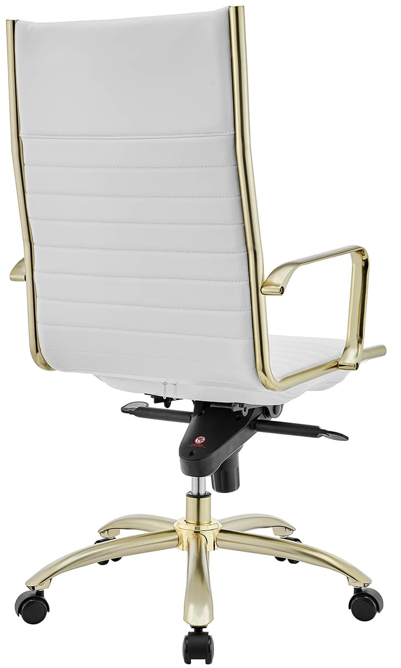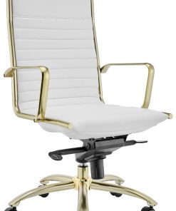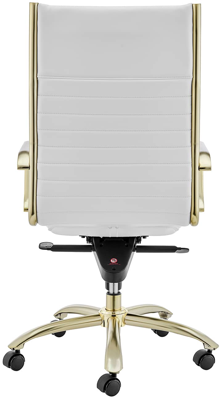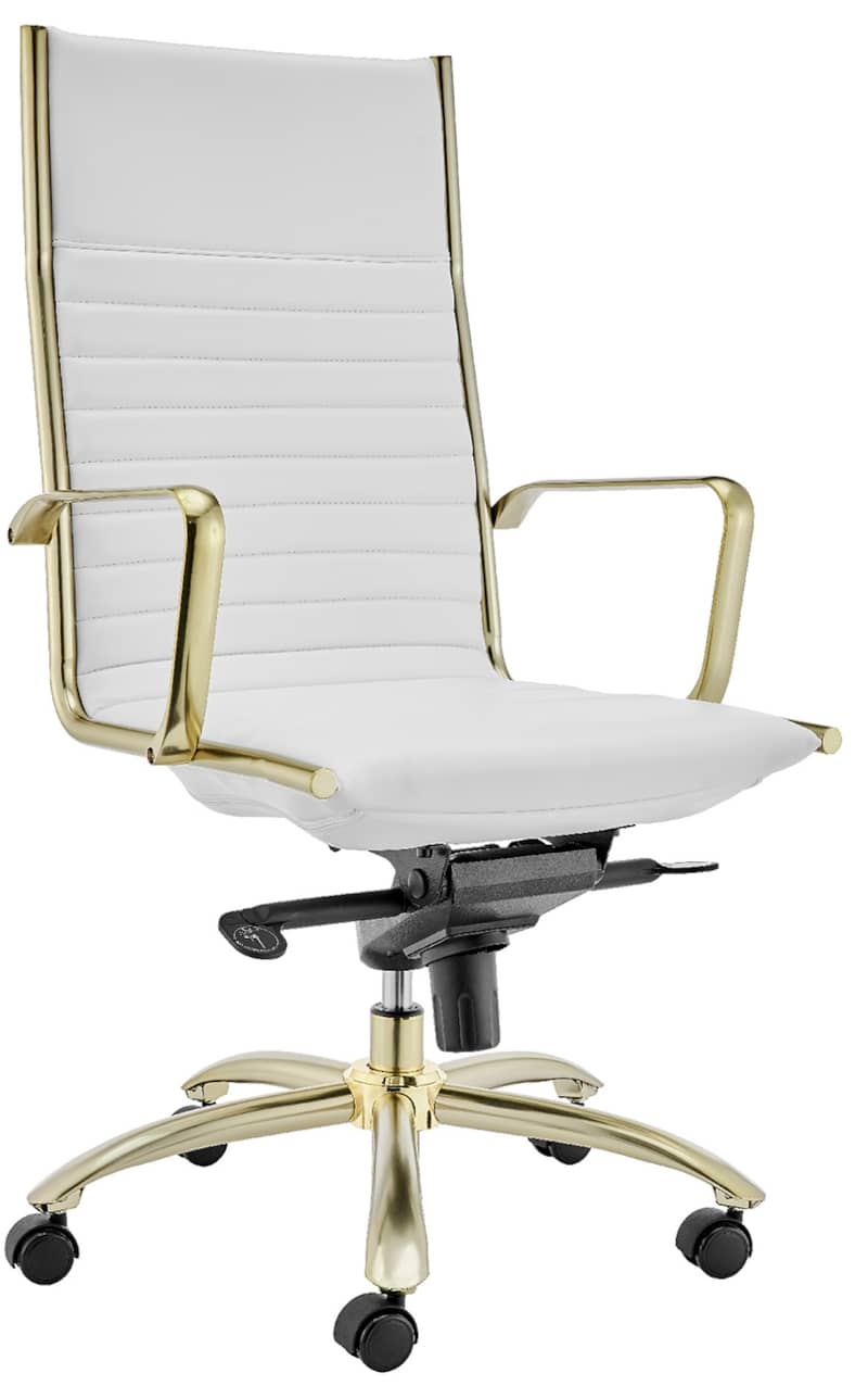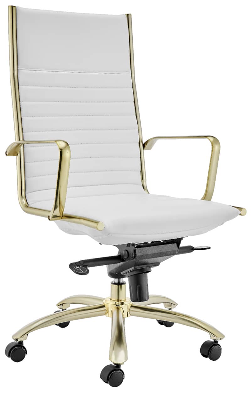 Euro Style 10675WHTMBG Dirk High Back Office Chair in White w/ Matte Brushed Gold BaseHigh back or low, armrests or not, the Dirk Office Chair design is very popular for all the right reasons. The seat and back are constructed into a single piece for a finished look, while inside the seat and back are flat bungie bands which offer an outstanding level of comfort that is famous worldwide. With stunning design and a variety of color options, the Dirk is perfect for any office space. Features
