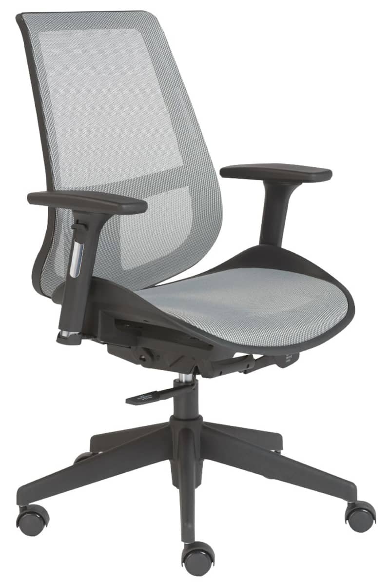 Euro Style 90534GRY Gray Vahn Office ChairWith a certain speedway flare, the Vahn Office Chair optimizes modern office layouts thanks to its compact design. The 19″-deep seat is constructed of a pliant polyester mesh (available in Gray or Black) stretched across the lower and back-frames with a fixed back support, providing ultimate comfort. Also features height-adjustable plastic armrests (20″ – 26″), lightweight nylon legs and rolling casters, 5-locking positions and easy-touch gaslift height adjustment. Features