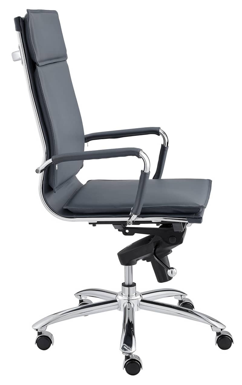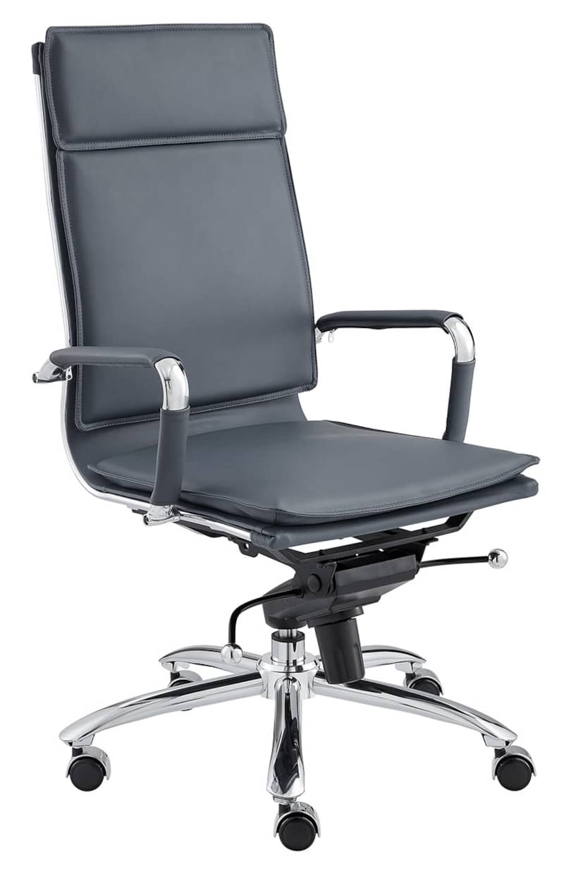 Euro Style 01264BLU Gunar Pro High Back Office Chair In Blue w/ Chromed Steel BaseIf you??re headed for the corner office, you??re going to need one of these. The high back support adds obvious authority to any meeting. The reliable tilt mechanism invites you to lean back and survey all that you??ve accomplished. Features