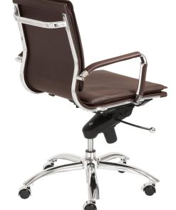Euro Style 01263BRN Gunar Pro Low Back Office Chair In Brown w/ Chromed Steel BaseThe five-leg pedestal on wheels is reliable and sturdy no matter how you roll. The rest is pure style. The feel of leather and the easy-to-use tilt mechanism are perfect when you want to lean into your work in comfort. Features