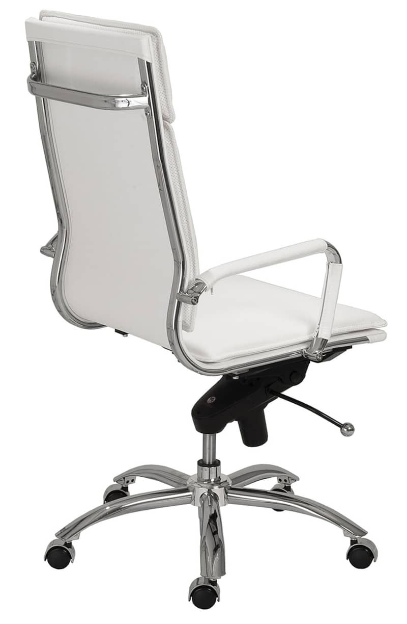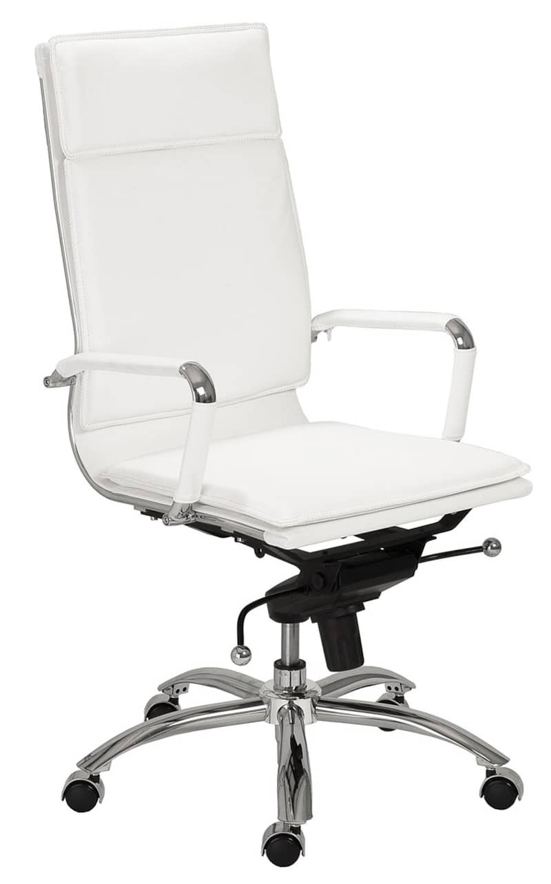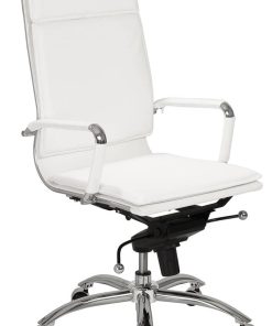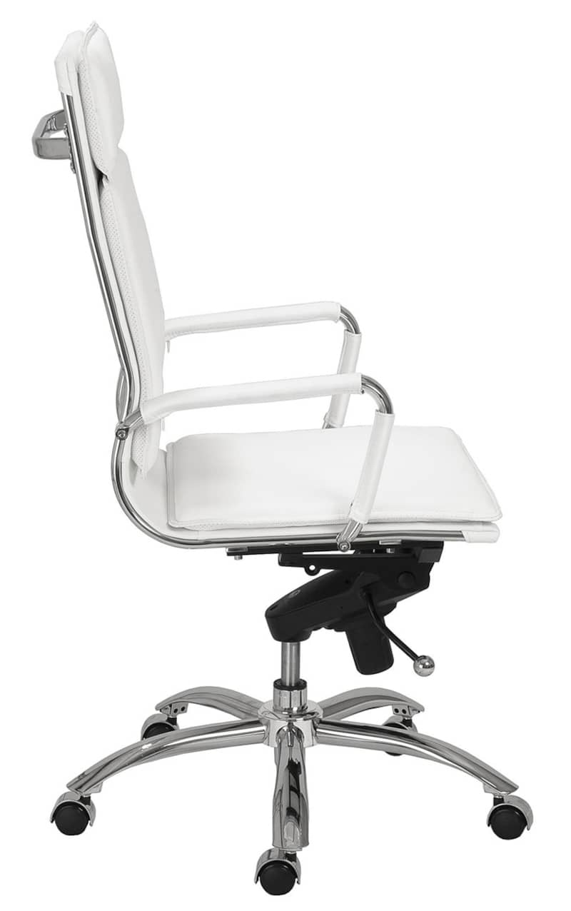 Euro Style 01264WHT Gunar Pro High Back Office Chair In White w/ Chromed Steel BaseIf you??re headed for the corner office, you??re going to need one of these. The high back support adds obvious authority to any meeting. The reliable tilt mechanism invites you to lean back and survey all that you??ve accomplished. Features