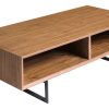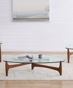 Euro Style 38962CLR-KIT Ledell 35″ Coffee Table In Clear Glass w/ Walnut BaseDistinct and visually mesmerizing, the Ledell Coffee Table is the perfect addition to any home with a modern or contemporary feel. With the marriage of clear glass and a stunning, warm walnut base, this table is sure to catch the eye of any guest. By the couch, or on its own, let the Ledell Coffee table make a distinct, warm statement all on its own. Features