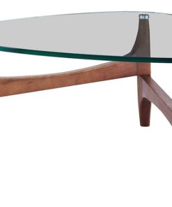 Euro Style 38962CLR-KIT Ledell 35″ Coffee Table In Clear Glass w/ Walnut BaseDistinct and visually mesmerizing, the Ledell Coffee Table is the perfect addition to any home with a modern or contemporary feel. With the marriage of clear glass and a stunning, warm walnut base, this table is sure to catch the eye of any guest. By the couch, or on its own, let the Ledell Coffee table make a distinct, warm statement all on its own. Features
