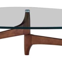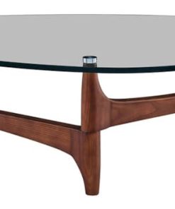 Euro Style 38960CLR-KIT Ledell 51″ Coffee Table In Clear Glass w/ Walnut BaseDistinct and visually mesmerizing, the Ledell Coffee Table is the perfect addition to any home with a modern or contemporary feel. With the marriage of clear glass and a stunning, warm walnut base, this table is sure to catch the eye of any guest. By the couch, or on its own, let the Ledell Coffee table make a distinct, warm statement all on its own. Features
