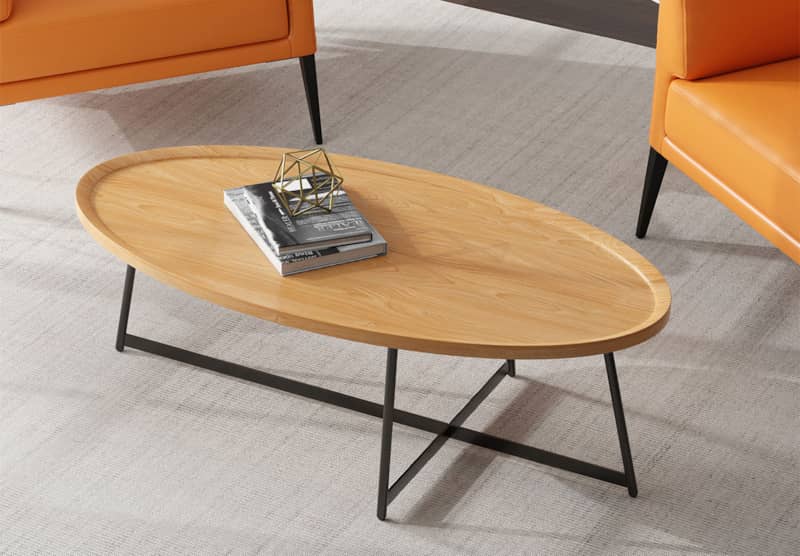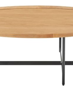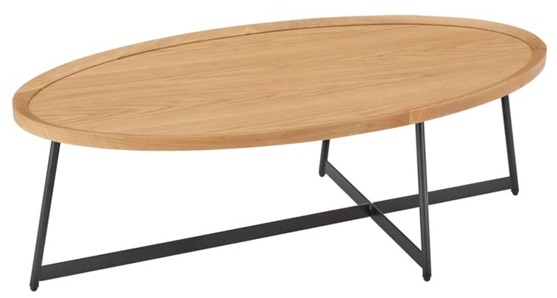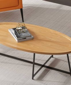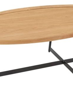 Euro Style 90272-OAK Niklaus 47″ Oval Coffee Table In Oak w/ Black BaseThe Niklaus coffee table adds a modern elegance to any room. With a oak veneer top, solid edges, and a black steel base, let this coffee table catch the eye of any wandering guest. Whether it’s supporting coffee, books, or nothing at all, let this dark backdrop be the perfect finish to your space. Features