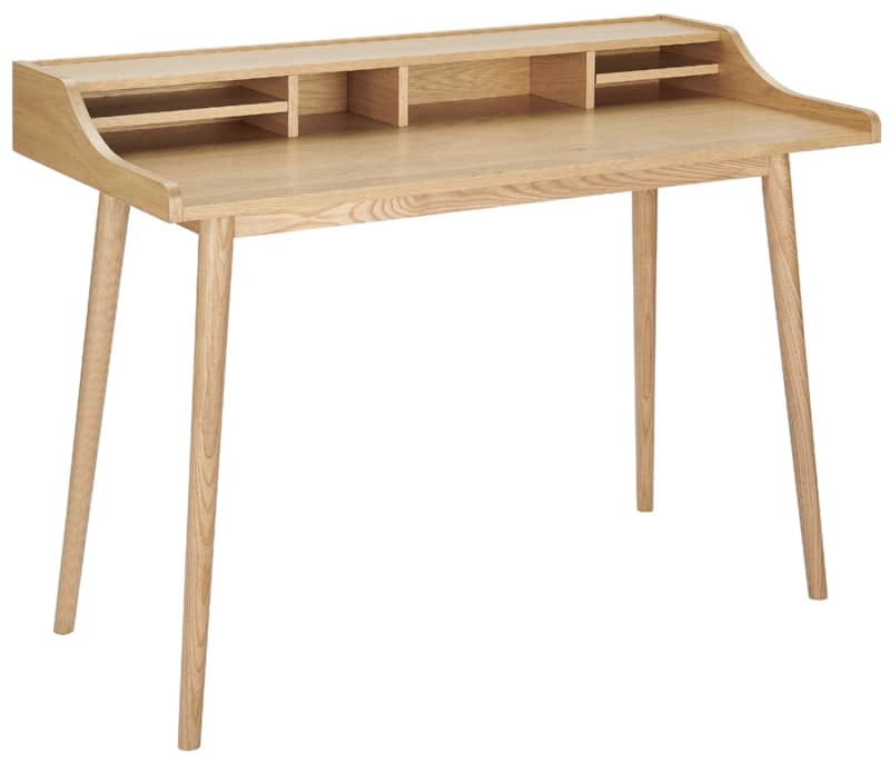 Euro Style 09701-OAK Oak Flavio DeskThe Flavio Desk features an American walnut veneer top with solid wood legs. The top contains six open shelves of varying sizes to store all your small office supplies in one easy-to-reach location. Features