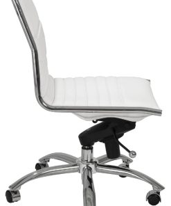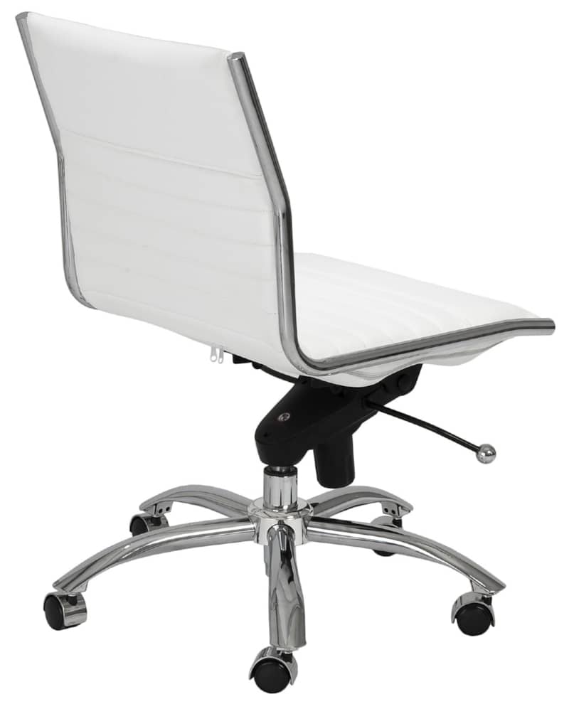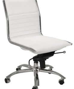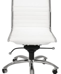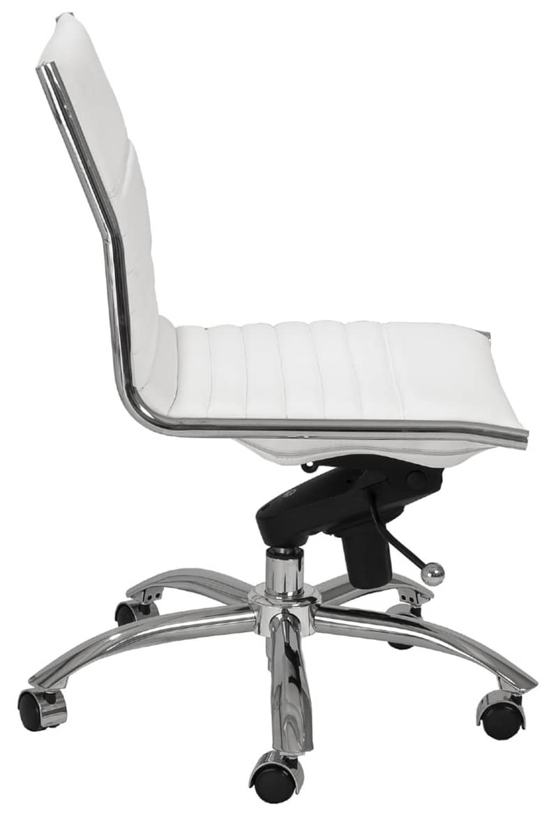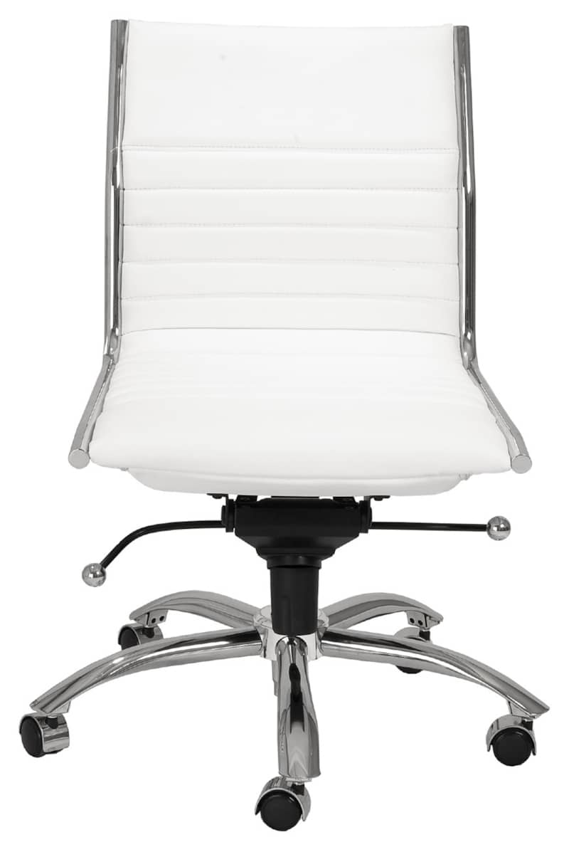 Euro Style 01266WHT Dirk Low Back Office Chair Without Armrests In White w/ Chromed Steel BaseHigh back or low, armrests or not, the Dirk Office Chair design is very popular for all the right reasons. The seat and back are constructed into a single piece for a finished look, while inside the seat and back are flat bungie bands which offer an outstanding level of comfort that is famous worldwide. With stunning design and a variety of color options, the Dirk is perfect for any office space. Features