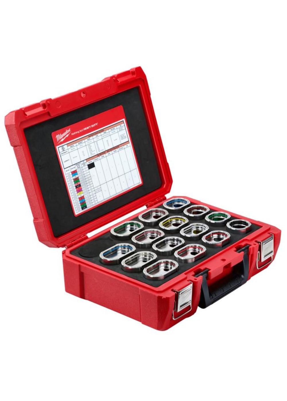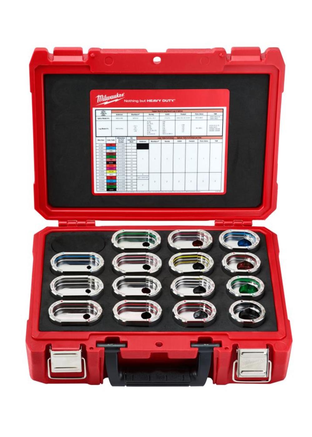 The M18? Force Logic? 750 MCM crimper is the easiest way to crimp, producing cULus classified crimps according to the UL 486A-B classification standards for #8 – 750 MCM Cu and dual rated Anderson, Blackburn? Burndy, Ilsco, Panduit, Penn-Union and Thomas & Betts connectors. Milwaukee? EXACT? 12T U-Style dies are individually engineered both for quality crimps and for faster connections on all sizes with die lengths specific to each connector. in addition every EXACT? 12T u-style die features vivid industry standard colors to indicate wire size and center alignment markings for easiest die selection and die alignment. All dies also eliminate cross referencing by imprinting the wire size onto completed connectors and are the only dies that are 100% serialized and measured for greatest accuracy and easiest inspection.