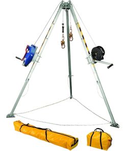 System Kit includes Tripod, 60 Ft. galvanized steel cable SRL-R and Personnel Winch, leg brackets and leg safety chain