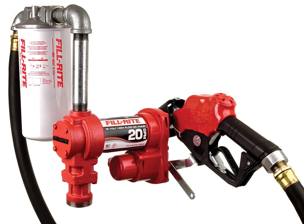 Contractor-grade, industry-standard Fill-Rite pump has an explosion-proof motor with permanent magnet. Features built-in check valve and strainer, hose with static ground wire and thermal overload protection. Ultra High Flow Automatic Nozzle and Filter Included. Made in the USA!