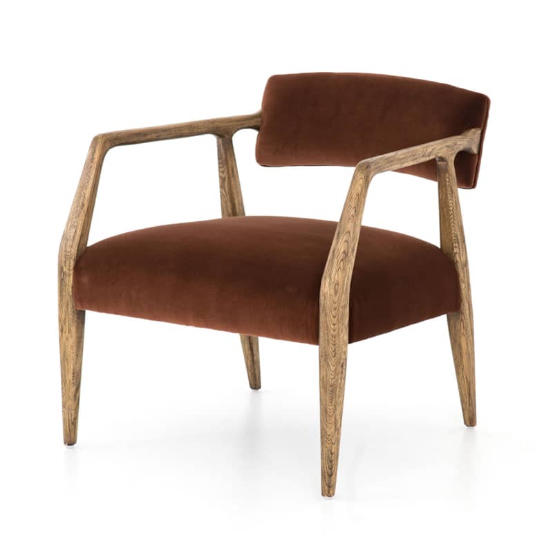 Four Hands Abbott Collection Burnt Auburn Velvet Tyler Arm Chair