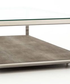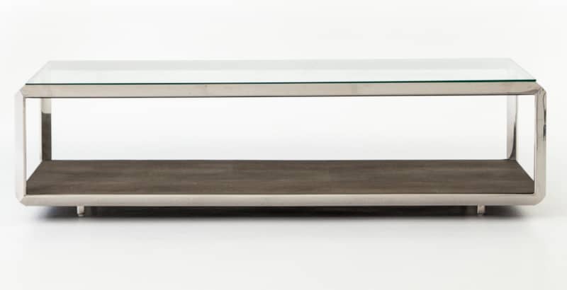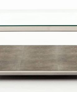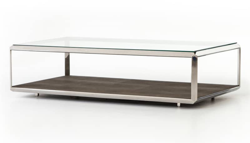 Four Hands Bentley Collection Shagreen Stainless Steel Shadow Box Coffee Table – VBEN-016Explore artful accents for modern living. Stunning occasional tables, bar carts, and desks add statement-making style in a range of intriguing shapes and high-end materials. Pops of stainless steel, antiqued brass, and faux shagreen give functional pieces a presence that is both on-trend and timeless A layer of brown faux shagreen resin sets an intriguing textural backdrop for prized possessions. Low styling lends a fresh feel to shiny stainless steel framing and clear glass top for a new spin on the traditional shadowbox. Features: