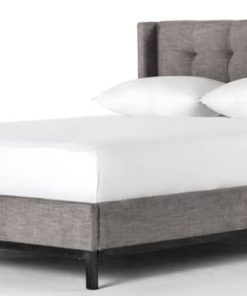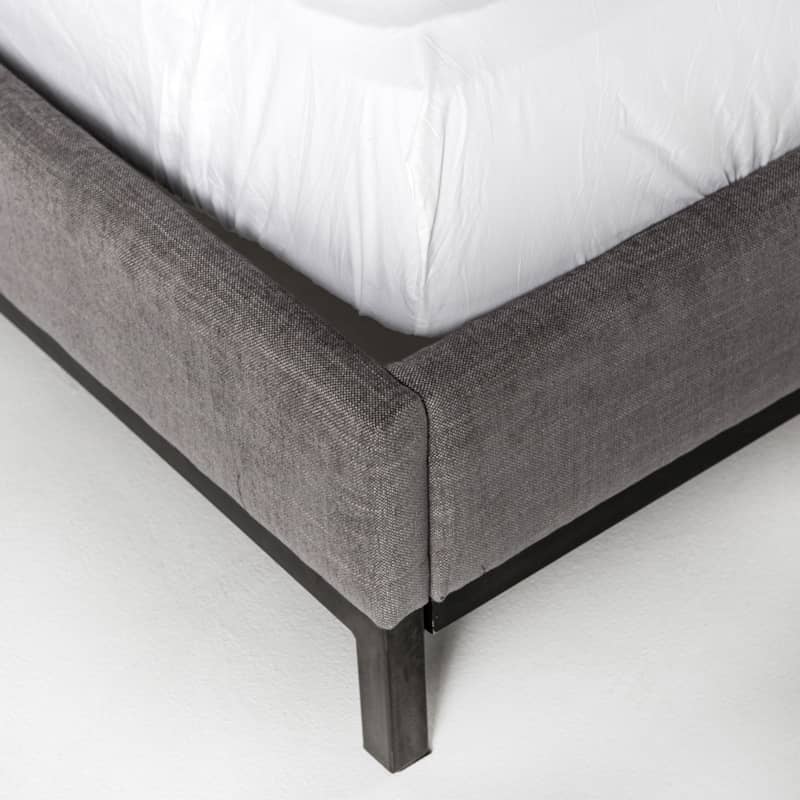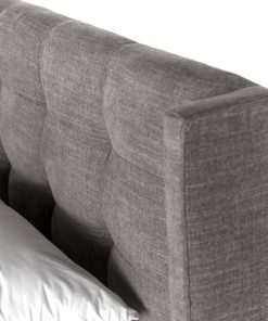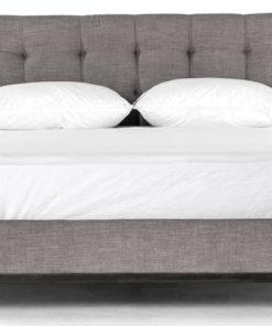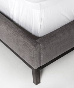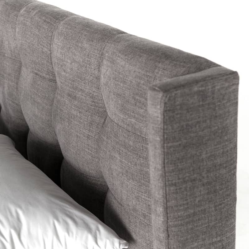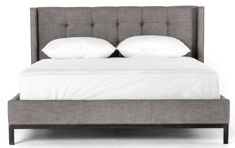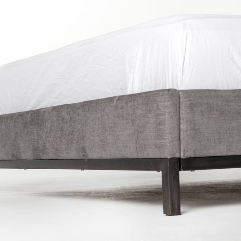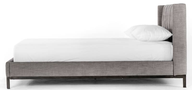 Four Hands Easton Collection King Newhall Bed In Harbor Grey, Model 105969-028Subtle, modern elegance. A low, tufted headboard in a fashion-forward grey pairs with a simple gunmetal iron base. Features