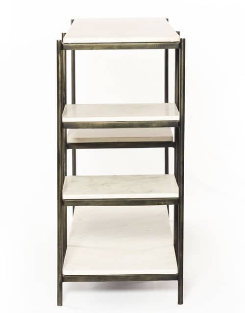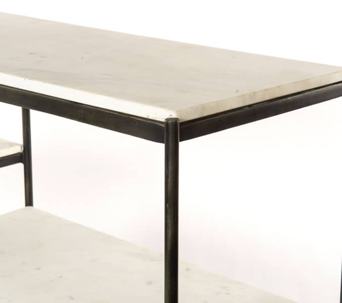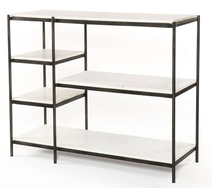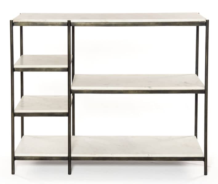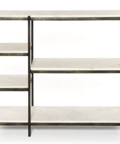 Four Hands Lily Hammered Grey Console Table – IMAR-146BAdd a pop of marble in classic, polished white. A slim iron frame is finished in a hammered grey for sophisticated contrast. Ample shelving sections meet simple grace with modern lines. From The Marlow Collection Features