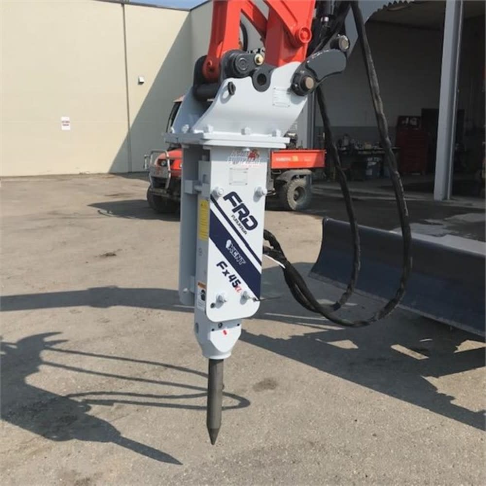 Furukawa / FRD (Kent) Hydraulic Breaker – Kubota K7870 Quick Attach Excavator Mount The dependable FX45 breakers are available in a variety of mounting configurations, enabling them to be easily attached to mini-excavators, skid-steer loaders and rubber-tired backhoes. WARNING: California’s Proposition 65 Features ??? Performance features and mounting options make these breakers ideal for site preparation, foundation removal, road repair, driveway and sidewalks or pedestrian bridges. ??? A variety of mounting options that can accommodate any carrier or application ??? Accommodates a wide variety of working steels ??? Includes two-year warranty with registration ??? Includes hoses & standard working steel * additional hoses may be required to work with your machine ??? Breaker ships on a pallet. ??? Carrier machine information is required when registering breaker for warranty; please be ready to share make, model and serial number of the carrier machine when purchasing. ??? Call to confirm mounting bracket will work with your machine or if you need a mount that is not listed. ??? Fits Kubota excavators with the factory K7870 quick coupler – models U35 and KX040 ??? The unique mono-block design is a result of years of engineering refinement and field experience. two moving parts simplifies the hammer operation and reduces the chance of downtime. ??? The advanced hydraulic circuit provides increased flow to the valve and piston, resulting in faster cycle times, increased tool penetration and more productivity per hour than on previous models. ??? There are no through-bolts to constantly torque or replace and the front wear bushing is easily replaced so your hammer is always in perfect working condition. ??? Mono-block design with only two moving parts reduces maintenance ??? No through-bolts to maintain ??? No diaphragm to replace ??? Replaceable front wear bushing keeps tools in peak performance ??? Wide oil flow range for fast, hard-hitting performance and more carrier options Acme Equipment is committed to providing the best available products to our customers at consistently competitive prices. We are committed to our customers?? total satisfaction from the initial purchase forward. We believe that the purchase of our products must be a positive and enjoyable experience. Our Team’s mission is to provide a first class shopping experience by applying our time, knowledge, and skill to maximize our customers?? satisfaction. We want each customer to be completely satisfied with the “Acme” experience. Our mission is to turn even our first time customers into satisfied long term customers. Acme Equipment is here for you every step of the way! Specifications ??? Acme Tools Air Shipment Restricted N ??? Acme Tools Brand Name FURUKAWA ROCK DRILL USA ??? Acme Tools Part Number FX45 FSP-KUB7870 ??? Additional Contents Hoses, working steel ??? Assembled Weight (lbs) 606 ??? Brand / Model Compatibility Kubota U35 and KX040 ??? Color / Finish Gray and dark blue ??? Connection Design Kubota K7870 Quick Attach Excavator Coupler ??? Country of Origin USA ??? Height (in) 16 ??? Hydraulic Maximum Flow Rate (gpm) 15.8 ??? Hydraulic Minimum Flow Rate (gpm) 7.9 ??? Internal Supplier Part # FX45 FSP-KUB7870 ??? Internet Product Code (IPC) 17BC23074BD ??? Length (in) 57.5 MFG Model # (Series) FX45 ??? MFG Part # (OEM) FX45 ??? Manufacturer Warranty One Year Limited Warranty ??? Maximum Torque (ft-lbs) 550 ??? Package Weight 606 ??? Product Name FRD (Kent) Hydraulic Breaker – Kubota K7870 Quick Attach Excavator Mount ??? UPC 406045000195 ??? Weight (lbs) 606 ??? Width (in) 2.36 Acme Equipment is here to provide you all of the information you need to make an educated purchase, as well as support you after the sale with parts, service, and warranty. Give us a call, and let us help you make a great investment. *** We Ship To All 50 States. We Have a Loading Dock, Forklift and Loading Personnel ***