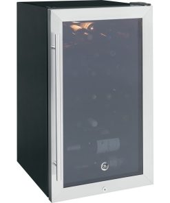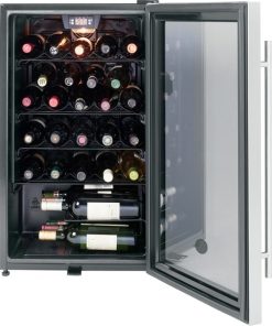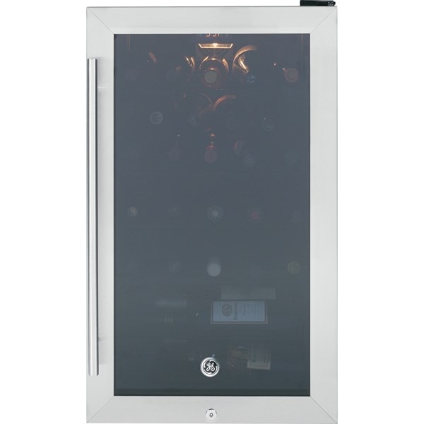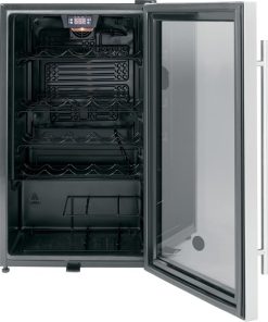 - Stainless steel door with large glass window -Showcases your wines for easy selection
