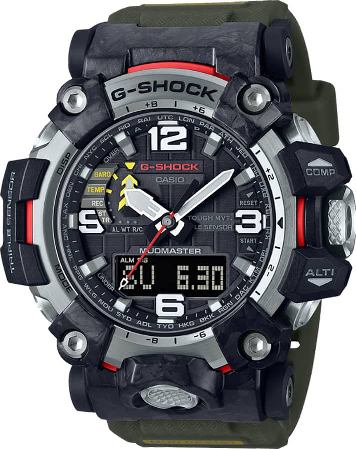 G-Shock Analog-Digital Mudmaster Gray Case w/ Red Accents Green Band Watch, 54mm