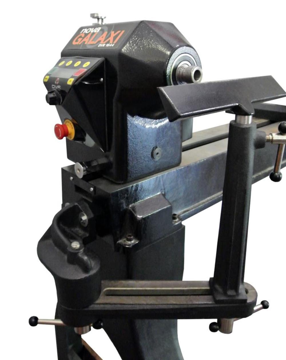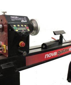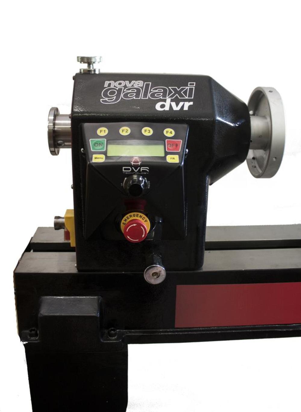NOVA galaxy DVR 1624-44 is the latest from the NOVA stable. It combines the best features of larger lathes ?C power, capacity and capability, with its incredible DVR intelligent direct drive motor, to deliver a super smooth, intelligent and versatile turning experience. It offers 1.75 HP / 110 V of direct drive, no belts (for ultra smooth and quiet performance), 100 to 5000 rpm, with high torque throughout the speed range for any turning project ?C be it a pen or a large, heavy bowl. This lathe has the most advanced DVR (Digital variable reluctance) features, including speed chart to advise the correct speed setting, optional electronic braking, dial-in 8 customizable favorite speeds, and safety sensing. The DVR motor uses smart motor technology to constantly monitor the spindle, increasing power to maintain the set speed as it senses extra load from the tool. The DVR drive constantly varies power needs according to conditions, and depending on the application, it can save up to 50% of electrical power compared to conventional motors. This is built around a solid cast iron swivel headstock and a large cast iron bed and stand, giving the lathe powerful, solid and vibration free performance. The galaxy has a wide speed range from a very low 100 rpm up to 5000 rpm. It features easy-to-use dial-speed control, making it the perfect lathe solution from micro to macro turning work. Its comprehensive menu naturally includes reverse turning, as well as assisted electronic braking as an option. The NOVA galaxy DVR offers 405 mm (16 In.) swing capacity (expandable to 735 mm (29 In.) with the optional outrigger accessory) and 1,115 mm (44 In.) between centers. The cast iron headstock can swivel 360 degrees and lock in any position, plus detest pin positions at 0, 22, 45 and 90 degrees for extra lock over and accuracy. The headstock can slide along the bed to provide maximum flexibility in positioning the headstock and tools. The tailstock features a self ejecting center.