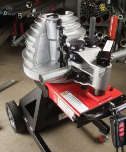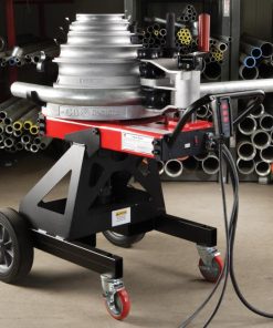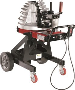 The B2000 cyclone electric-powered conduit bender is a unique production conduit bender able to bend 1/2 In. to 2 In. rigid, rigid aluminum, EMT and IMC conduit with a single shoe, and no extra parts. The B2000 is also capable of bending PVC-coated rigid conduit from 1/2 In. to 2 In. Designed to perform bends in both a horizontal and vertical position to create accurate offset bends and with the ability to make repeatable bends at the same degree. Engineered to save time while creating absolutely accurate bends with easy-dial settings that make training time virtually non-existent. A hook attachment on the pendant frees hands while working with conduit. The circuit board is designed with a resetting circuit breaker function that protects the circuit board if the current draw becomes too high and eliminates down time changing fuses. Powerful 110/115 V AC, 15 Amp 1 HP DC motor with low-volt (95), high-volt (132) automatic shut-off helps protect electrical components from voltage fluctuations. Four wheels (2 locking casters) and rear forklift pockets ensure the unit’s mobility and maneuverability.