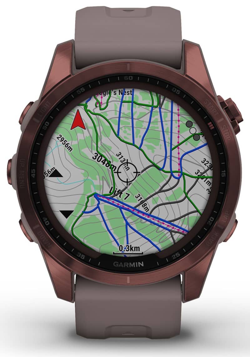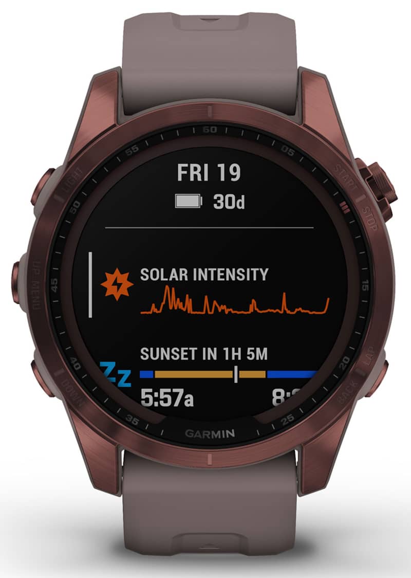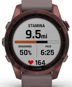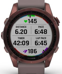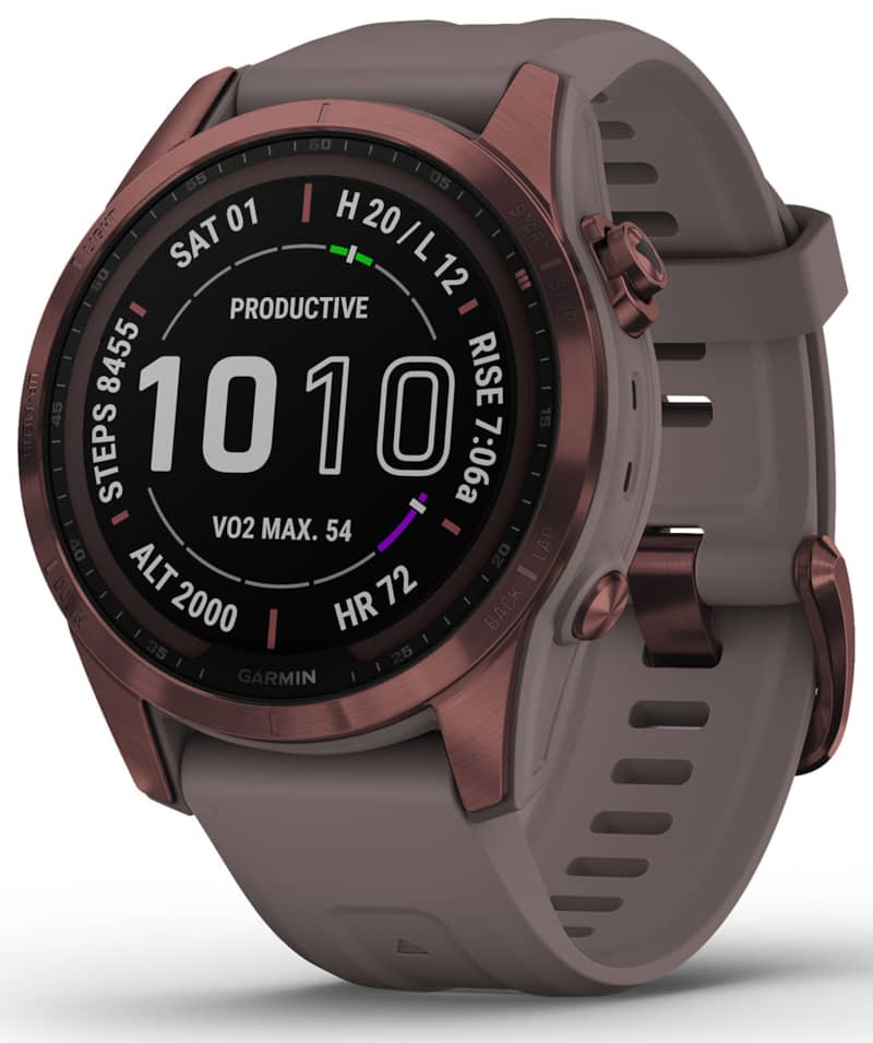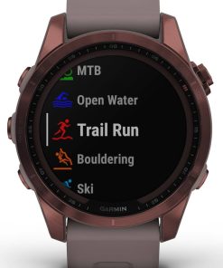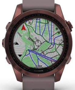 Garmin 010-02539-28 fenix 7S Sapphire Solar, Dark Bronze Titanium With Shale Gray BandThere are 7 days in a week. And the f??nix? 7S Sapphire Solar multisport GPS watch is built to go strong for all of them. It??s styled for smaller-sized wrists and has a scratch-resistant Power Sapphire? solar charging lens for the battery life to sustain your athletic and outdoor challenges. Use trusted button controls or the new touchscreen interface to access selections. Gain performance insights and metrics that help you manage your exertion and build stamina. Optimize recovery with 24/7 health and wellness monitoring of heart rate, respiration, stress, sleep and more (this device is intended to give an estimation of your activity and metrics; it is not a medical device). Outdoor navigation sensors and new multi-band GNSS technology help guide you with a higher level of positioning accuracy, even in challenging environments. Plus, you??ll have preloaded TopoActive maps and worldwide ski and golf maps right on your wrist. To complement your tamer days, connected features include smart notifications when connected to a compatible smartphone, music storage and Garmin Pay? contactless payments in supported countries and payment networks Key Features