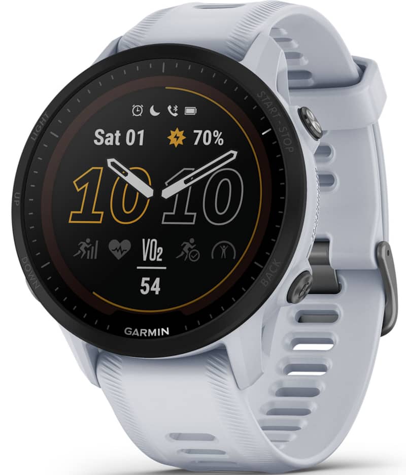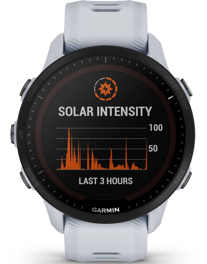 Garmin Forerunner 955 Solar 47mm Smartwatch w/ Whitestone Silicone Strap, Model 010-02638-01Outshine the Competition Pushing toward the podium? Get this lightweight smartwatch on your wrist. Train your best, perform your best, and outlast the pack with a Power Glass? solar charging lens to extend battery life. Key Features