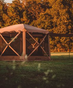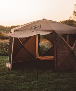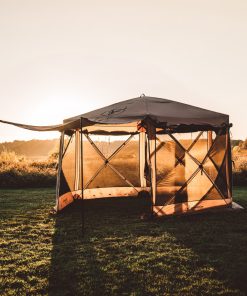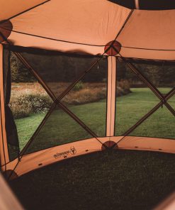 Whether it??s harsh sunlight or a relentless invasion of insects, Gazelle portable gazebos allow you to set up shelter where you need it most and enjoy the outdoors. Our unique hub design system features integrated fiberglass poles that pop out and form a rigid shelter in under 60 seconds. No assembly required and no loose parts! G6 Deluxe six-sided gazebo is the ultimate shelter, features 92 square feet of usable space and stands a towering 86?? tall??providing more than enough room for up to eight people and a table. Featuring attached wind panels with zippered windows panels and zippered screens windows to increase ventilation when you just need shade from the sun. The front attached wind panel can double as an awning. The G6 Deluxe also features a second D-shaped door at the back of the gazebo