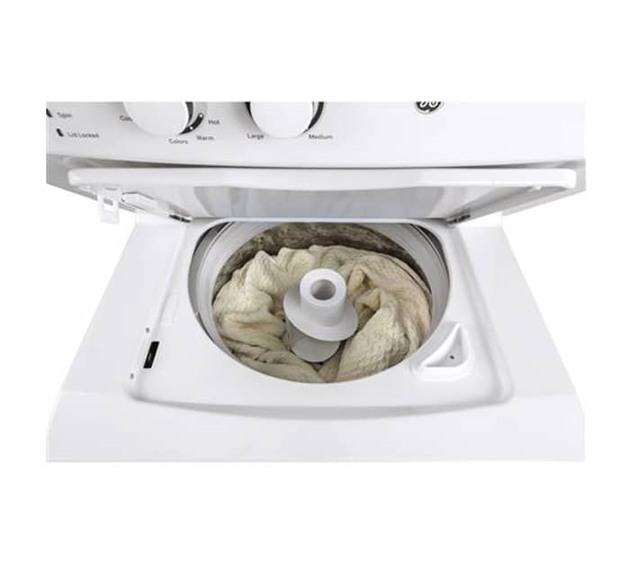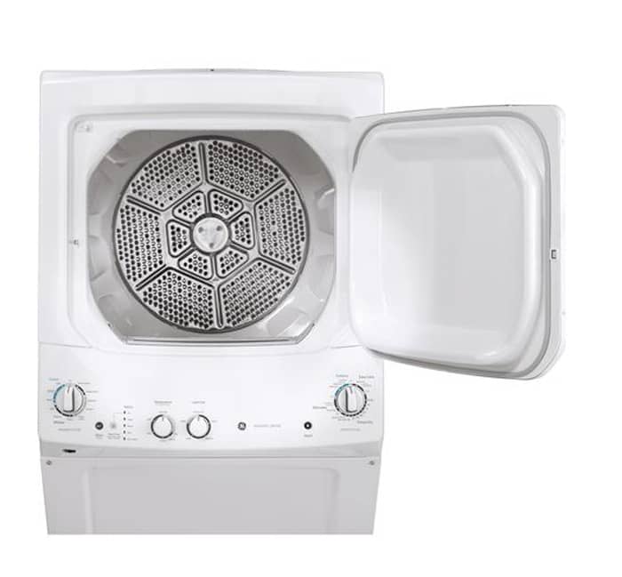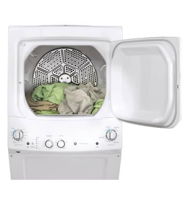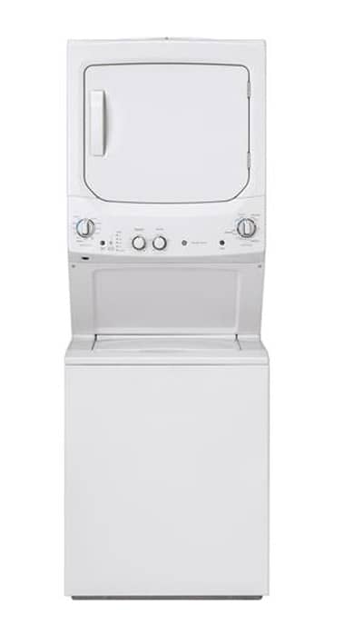GE Unitized Spacemaker 27″ White Stack Washer With Electric Dryer