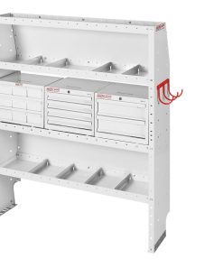 Designed for contractors, remodelers or other general service providers, the WEATHER GUARD Model 600-8411X van package for High-Roof, 170in extended wheel base Ford Transit vans provides adjustable cargo van shelving sized to fit the commercial van interior, 6 medium storage bins, a 5 drawer secure storage cabinet, and accessories. It includes a sturdy van bulkhead for maximum protection against shifting loads. Additional van products are available to create a custom van storage solution.