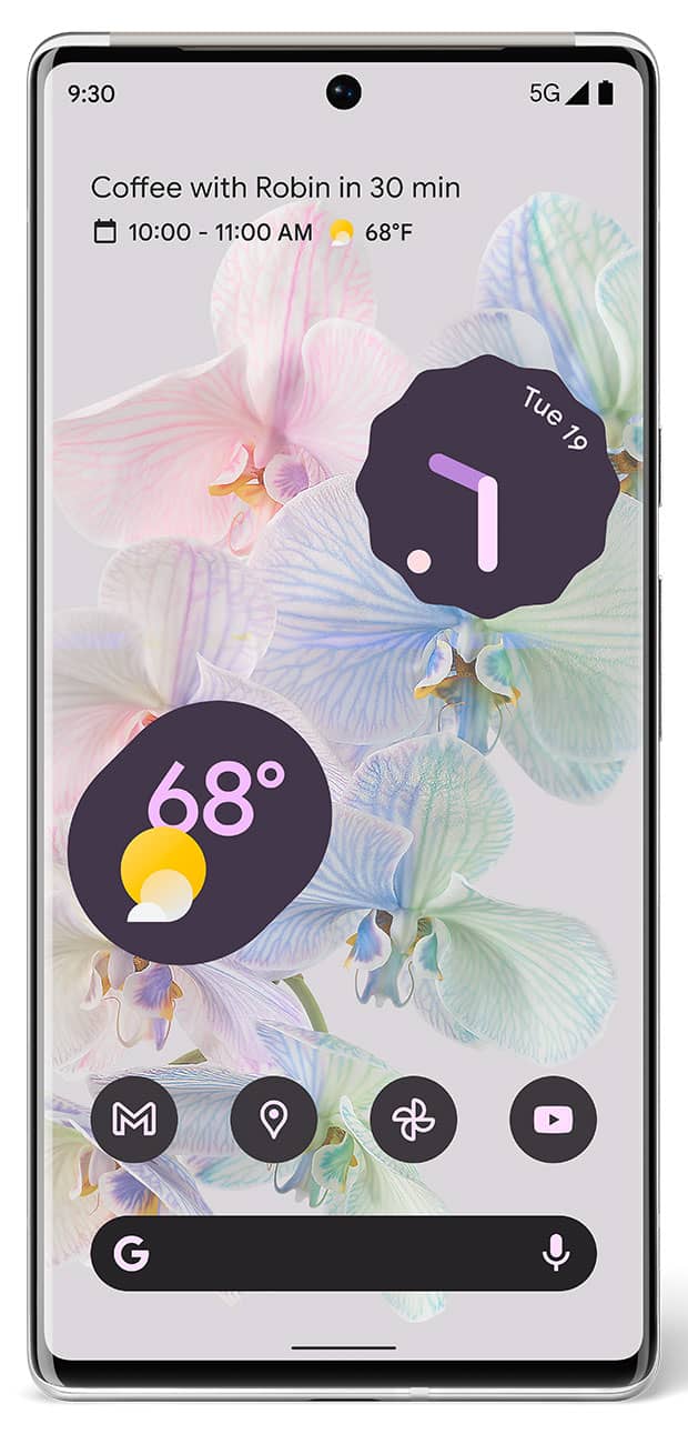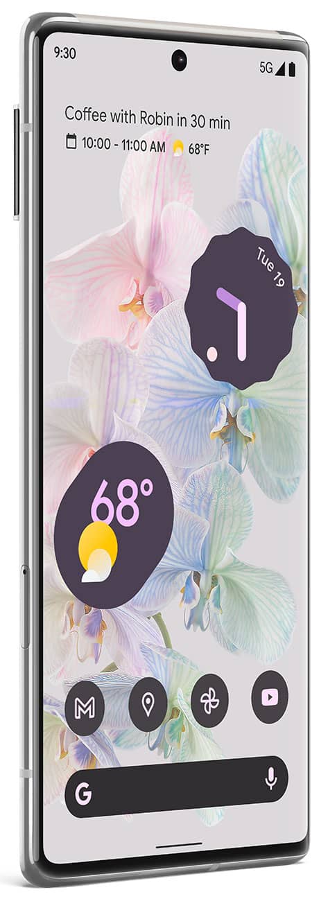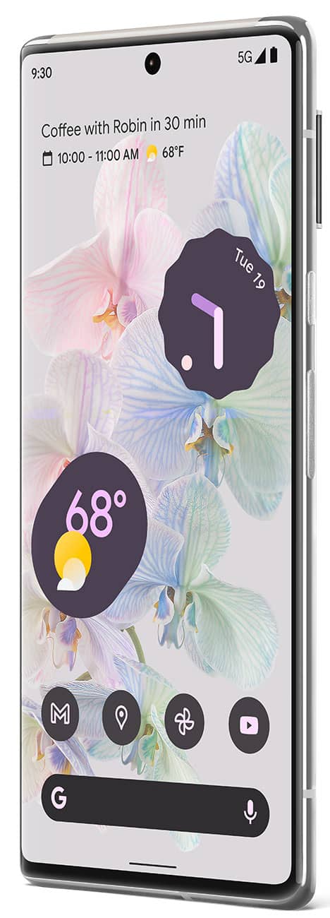 Google PIXEL6PRO-128GB-WH & 6074D Pixel 6 Pro 128GB Cloudy White 5G Cellular PhoneGoogle Pixel 6. Uniquely yours. Introducing Pixel 6 Pro, the completely redesigned, fully loaded Google phone. The Pixel Camera system includes a pro-level telephoto lens. The Smooth Display intelligently adjusts up to 120Hz. Next-gen Titan M2TM security helps protect you, your data, and your privacy.And with the Google Tensor processor, it??s the smartest and fastest Pixel yet. Features Display