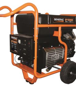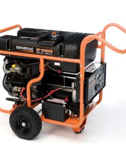 The Generac? GP Series 15000E Portable Generator is ideal to have when you need lots of power fast, such as after a natural disaster. This electric-start generator starts up without the need to spend time pulling on a cord. Its OHVI? engine enjoys durability similar to that of an automotive engine. The idle control feature reduces overall noise levels and gives you longer run times, and the low-oil pressure shutdown protects the unit from potential damage. A 1-1/4-inch steel tubing frame protects the Generac portable generator from damage. An integrated lifting eye makes it easy for you and your crew to load the generator onto your truck bed. Two sturdy wheels make it easy for one person move the generator around.