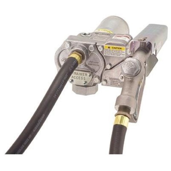 115V AC pump is designed for stationary locations. Overload protected motor and thermal breaker. Suitable for pumping gasoline, diesel fuel and kerosene. Includes manual nozzle, hose, and spin collar for easy installation. UL listed, CSA certified.