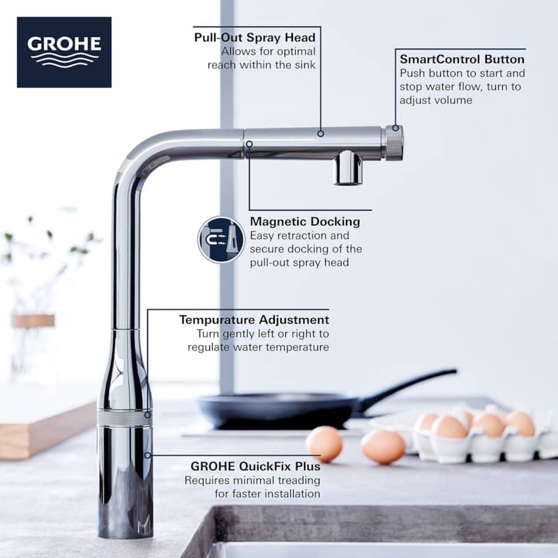 GROHE Essence StarLight Chrome Smartcontrol Pull-Out Kitchen Faucet