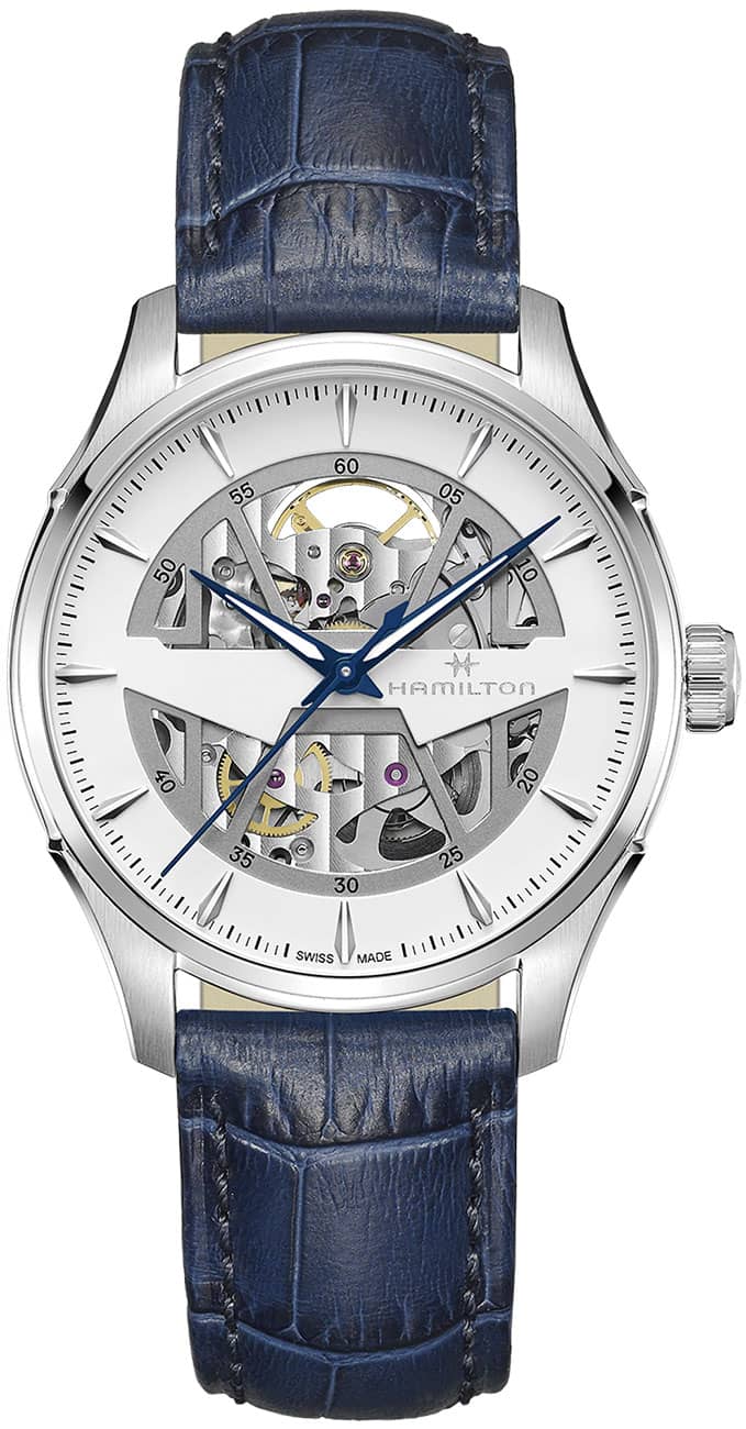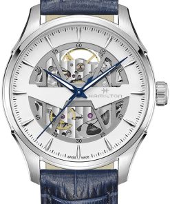 Hamilton Jazzmaster Skeleton Auto White Dial Blue Leather Watch, 40mm