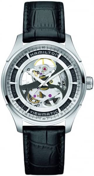 Hamilton H42555751 Jazzmaster Viewmatic Skeleton Auto Silver Dial Black Alligator Leather Watch, 40mmThe H-20-S Hamilton automatic movement echoes the skeletonization theme, uniting |
