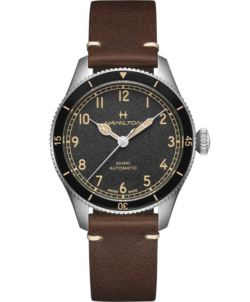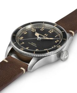 Hamilton Khaki Aviation Pilot Pioneer Automatic Black Dial Brown Leather Watch, 38mm