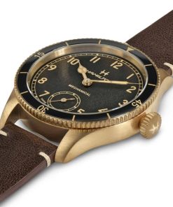 Hamilton Khaki Aviation Pilot Pioneer Bronze Black Dial Brown Leather Strap Watch, 43mm