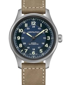 Hamilton Khaki Field Titanium Auto Blue Dial Brown Leather Strap Watch, 42mm