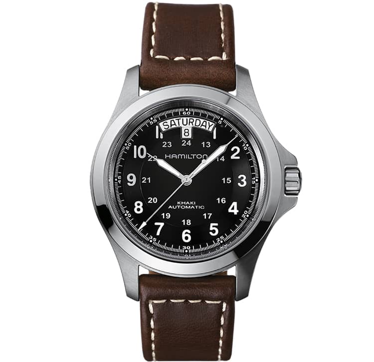 Hamilton Khaki King Auto Black Dial Brown Leather Strap Watch, 40mm