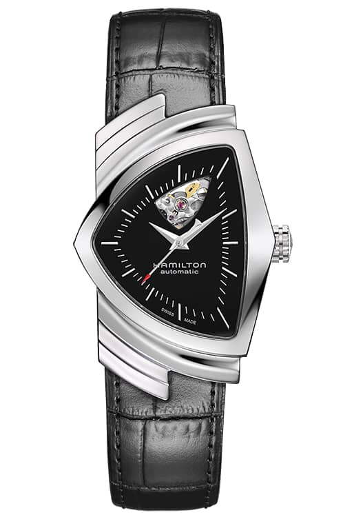 Hamilton Ventura Open Heart Automatic Black Dial & Leather Strap Watch, 32.3mm x 50.3mm