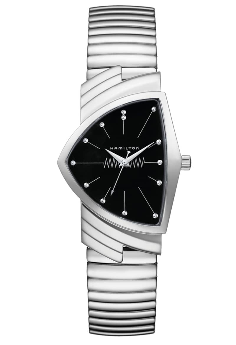 Hamilton Ventura Quartz Black Dial Silver Stainless Steel Bracelet Watch, 32.3mm x 50.3mm
