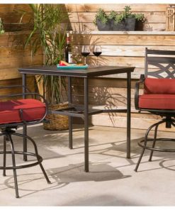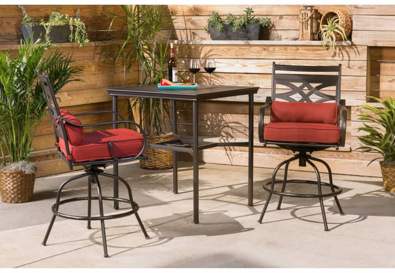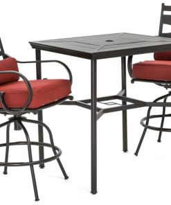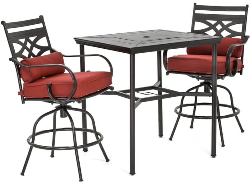 Hanover Montclair 3-Piece Outdoor Dining Set In Chili Red/Brown With 2 Swivel Chairs, 33×33 Steel-Stamped Table