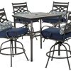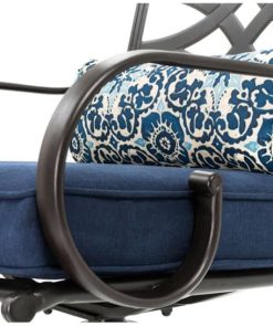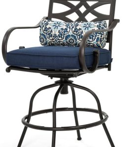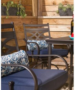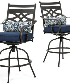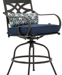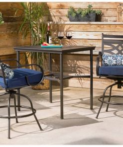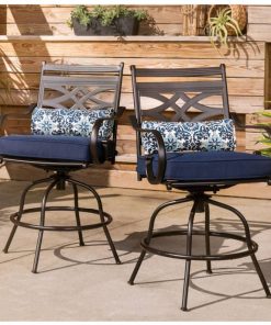Hanover Montclair 3-Piece Outdoor Dining Set In Navy/Brown With 2 Swivel Chairs, 33×33 Steel-Stamped Table
