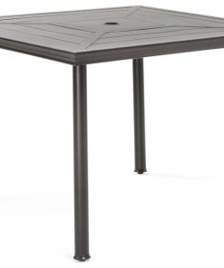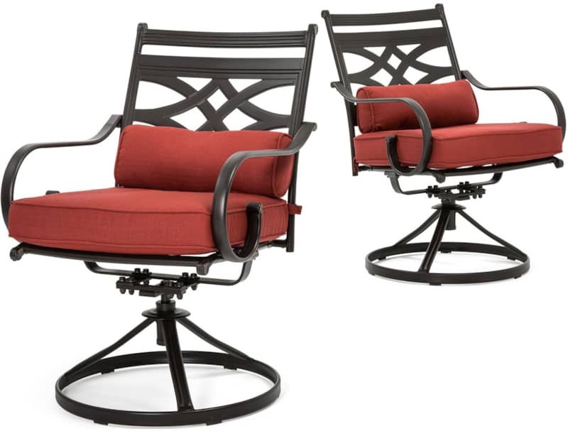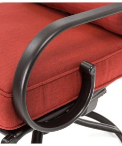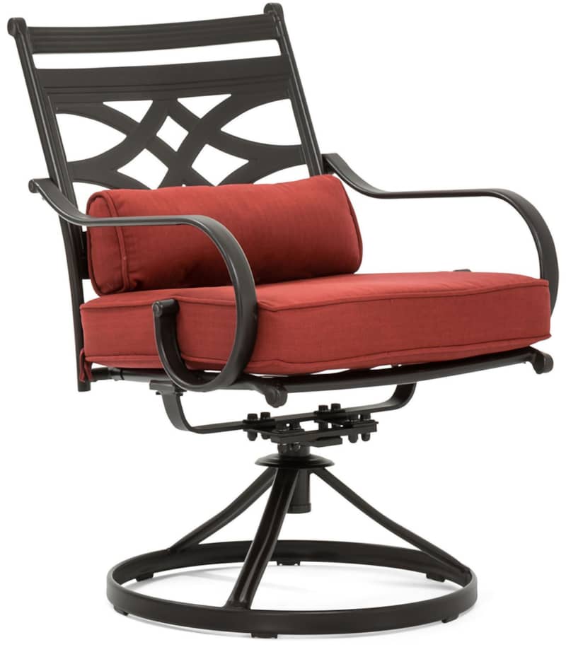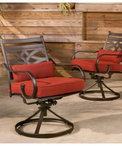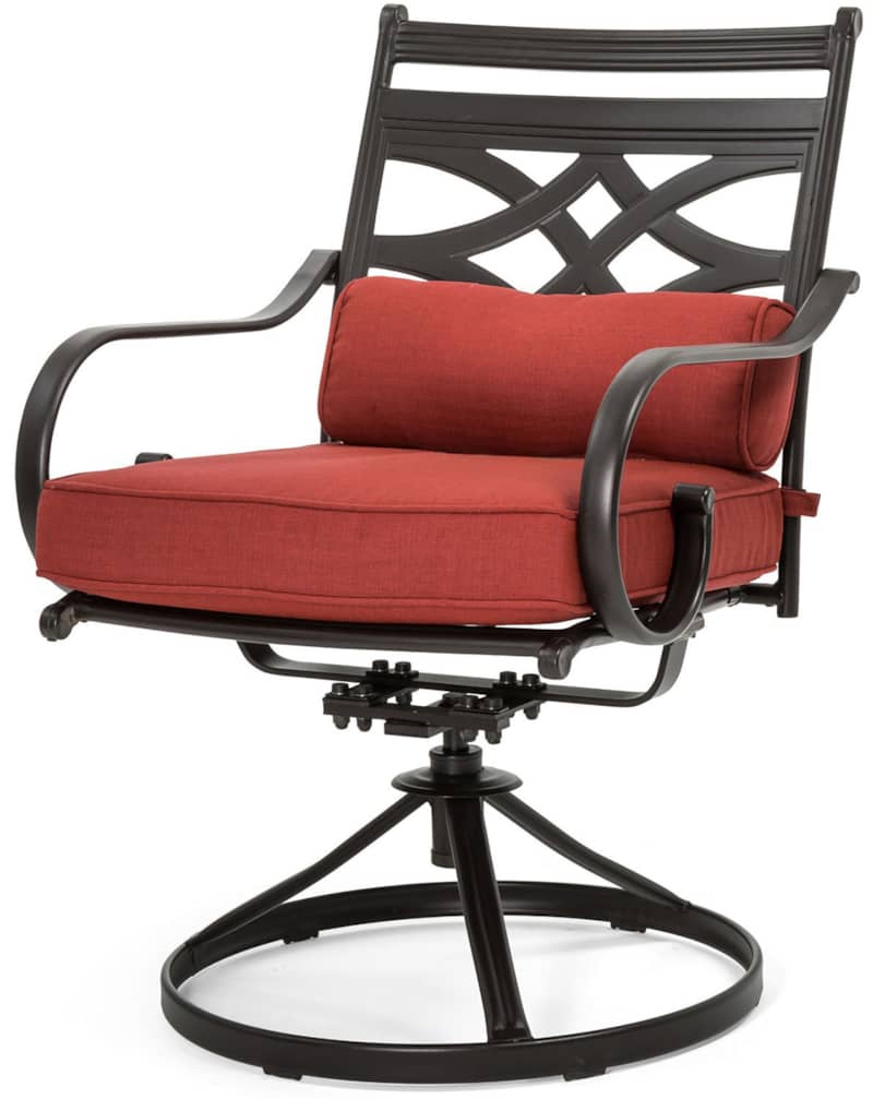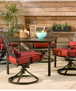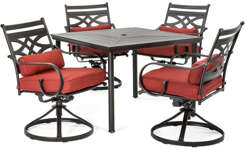 Hanover Montclair 5-Piece Outdoor Dining Set In Chili Red/Brown With 4 Swivel Rockers, 40″ Square Dining Table