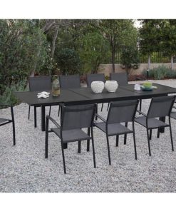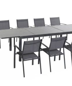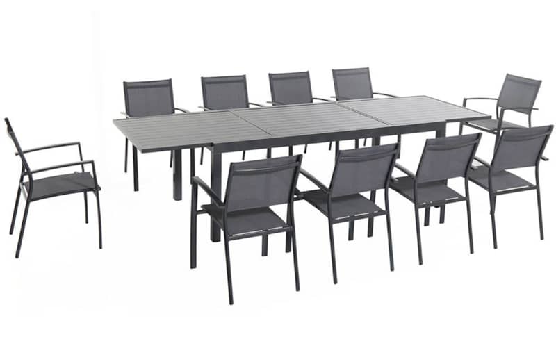 Hanover Naples 11-Piece Outdoor Dining Set In Gray With 10 Sling Dining Chairs, 40″ x 118″ Expandable Table