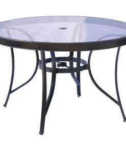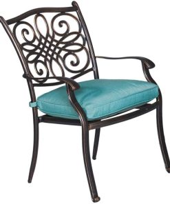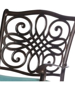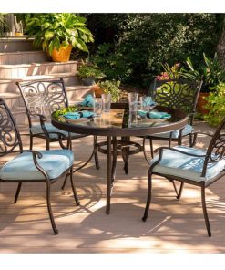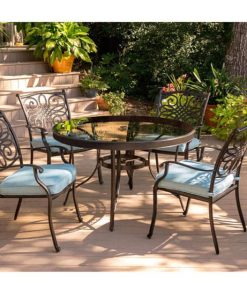 Hanover Traditions 5-Piece Outdoor Dining Set In Blue/Bronze With 4 Dining Chairs, 48″ Glass-Top Table